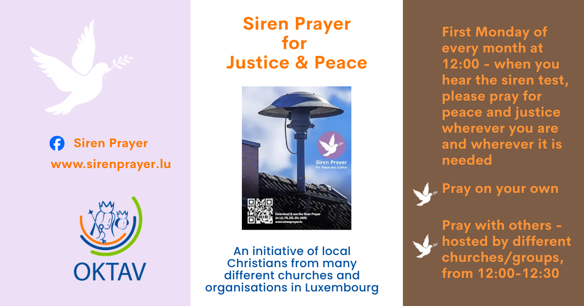 If you are unable to join us, pray where you are for peace and justice using the Siren Prayer; click here for the prayer in 5 languages